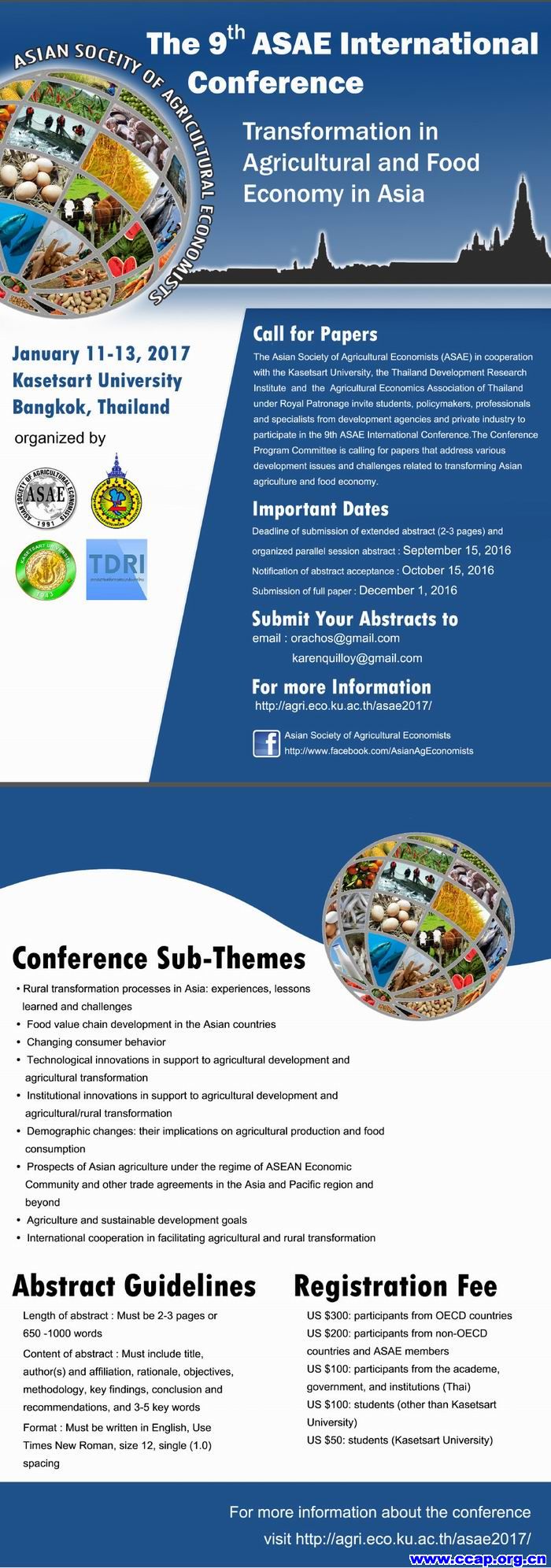 Call for Abstracts and Posters: 9th Asian Society of Agricultural Economists (ASAE) Conference