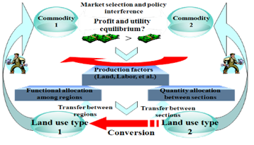 The CGELUC model retrieves the coupling relationship between industrial development and structural changes of land use with the idea of solving mathematical optimization, quantitatively represents the relationship between regional development and land-use change, and studies laws of the structural change of regional land use triggered by policy instruments.
